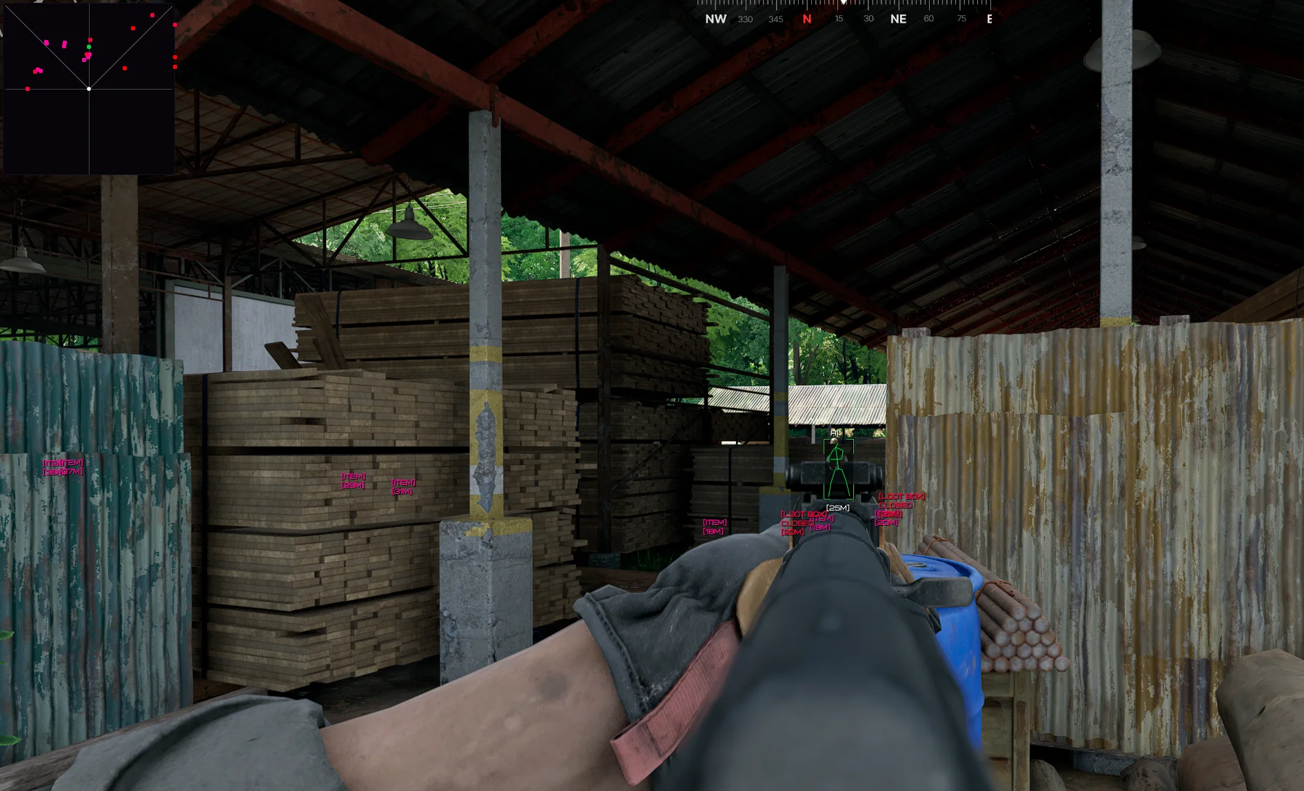 The built‑in radar displays players, loot and containers. Scale, point size and colors can be configured, making it a convenient navigation tool.